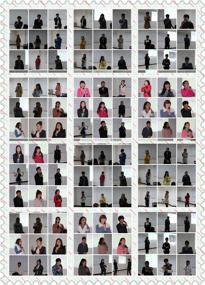 参与本次竞选的同学有104人,竞选的部门分别是宣传部、文社部、纪检部、组织部、社会实践部、办公部、学习部、文艺部、生活部、体育部。系员工会纳新比赛分为四个环节,分别是上交自荐书,这样方有资格参加竞选。第二环节是自我介绍,由选手向老师和部长介绍自己。第三环节是选手个人的才艺展示,属于加分环节。最后一个环节是选手竞选部门的部长随机提出问题,由选手作答,考验选手临场应变能力。宣传部的才艺是展示自己所做的画作,每个竞选者的作品都十分出色,使人眼前一亮。文社部的竞争也很激烈,选手们都很多才多艺,其中杨明浩同学的纸牌魔术使气氛达到了第一个高潮,老师们随机说出的纸牌竟然能神奇的一致,很是吸人眼球。纪检部与组织部的选手们都发挥的很好,临场应变能力都很强。其中不得不说的是文艺部,竞争最为激烈,有深情献唱的,有劲歌热舞的,现场的气氛达到又一个高潮,十分火爆。随着时间的推移,最后竞选的部门是体育部,部长在开始竞选前向体育部的竞选者们表达了歉意,因为时间的问题,感谢同学们能一直坚持到现在。再又一番的激烈竞争之后,旅游航空系员工会纳新活动终于在当晚7点落下帷幕。